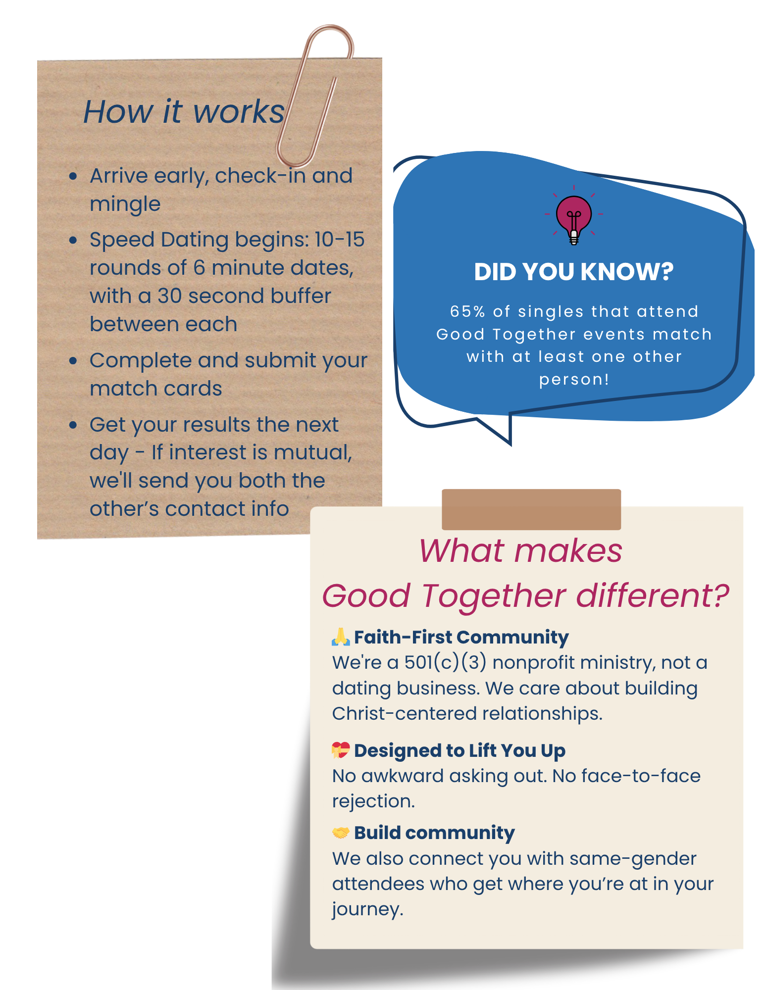 We will be hosting two events open to all Catholic singles in the age ranges of 23 - 35 and 28 - 42.